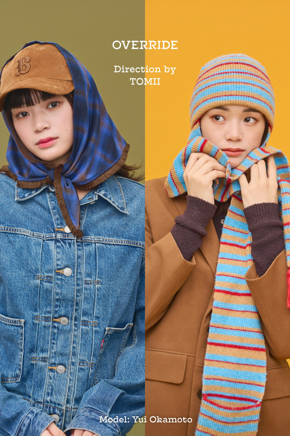 岡本ゆいが厳選した国内外の人気ブランド帽子を取り扱う・OVERRIDE とインフルエンサーのとみいさんがコラボレーションしたアイテムルックのモデルを務めました。