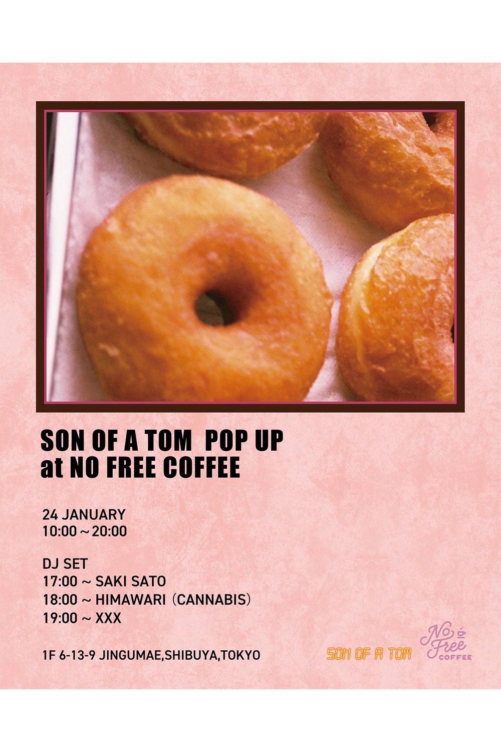 佐藤さきが1月24日(土)に原宿の NO FREE COFFEE にて開催される SON OF A TOM のPOPUP にて DJ として出演します。